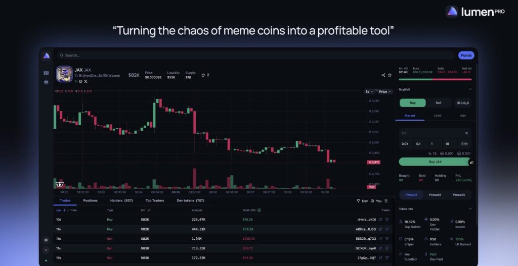 The team behind Lumen PRO aren’t newcomers. They’ve built hedge funds, HFT (High-Frequency Trading) systems, and launched 700+ Web3 projects. Their MVP (Minimum Viable Product) is already live on Solana, with 70,000 users in the pipeline and 40,000 traders lined up for launch.